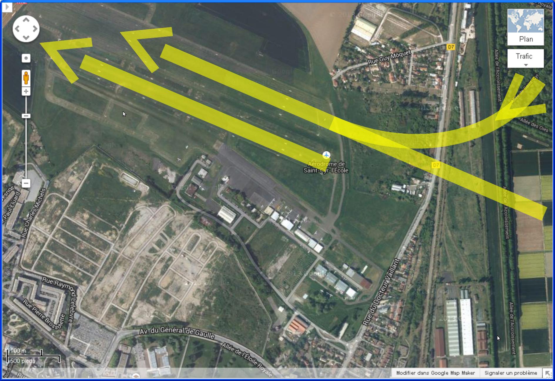 La trajectoire des avions en fin de circuit rapproché