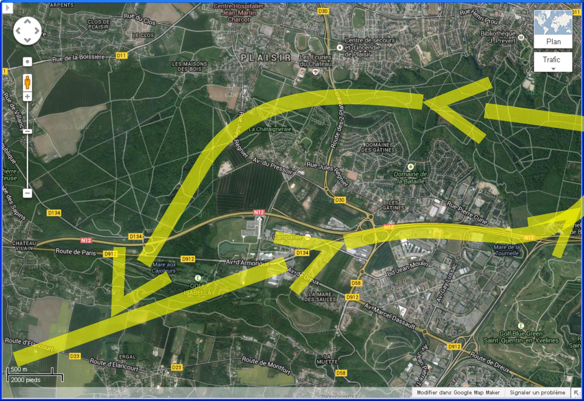 de l'itinéraire dérogatoire qui longe la nationale 12. Cet