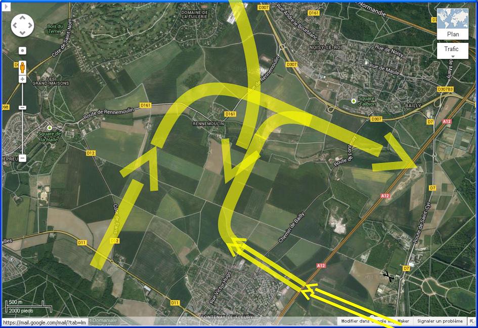 passer au nord de Rennemoulin. Laisser le village à bonne distance